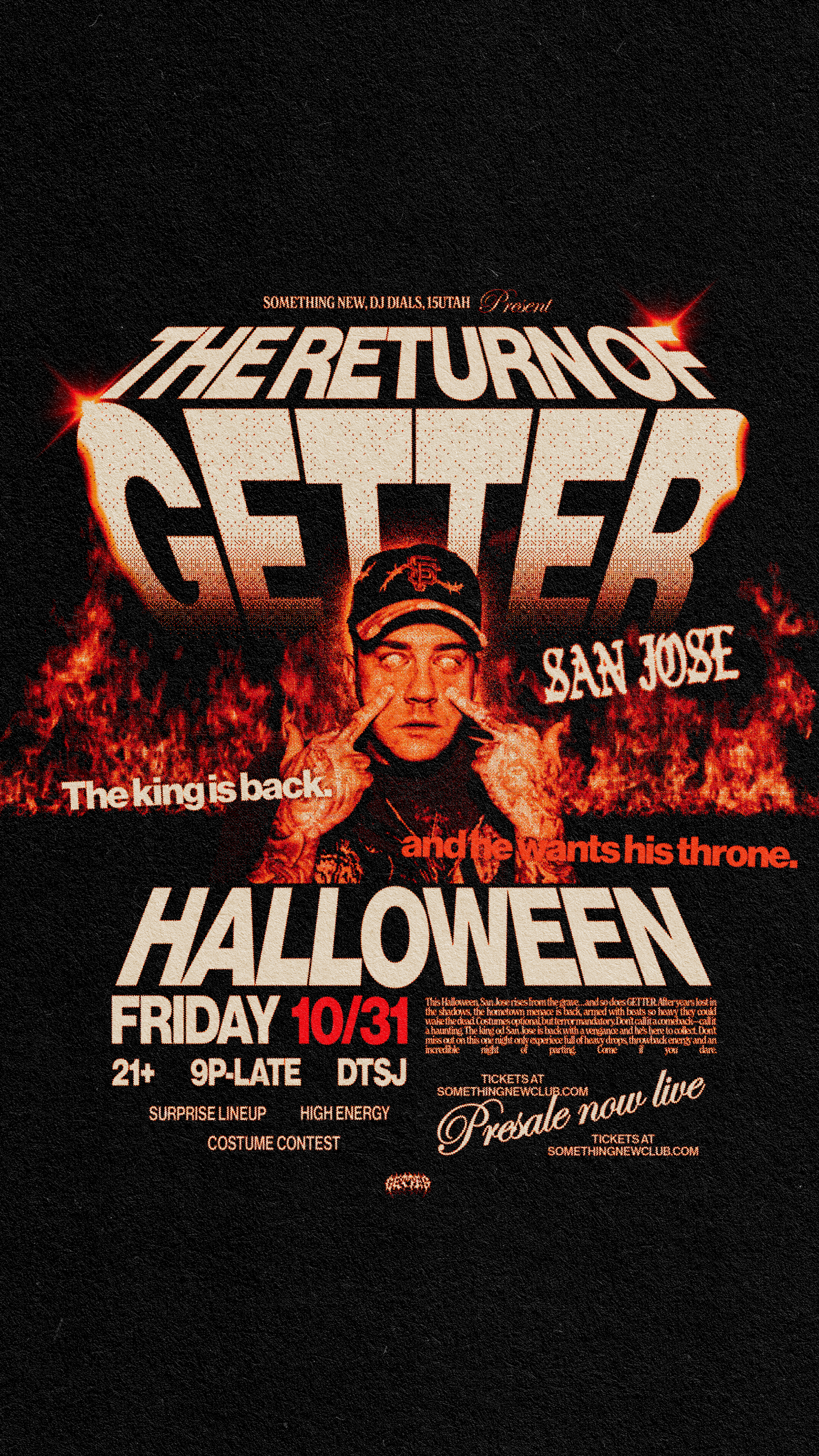 SOMETHING NEW, DJ DIALS, 15UTAH HALLOWEEN:THE RETURN OF GETTERGetter is back. And he’s ready to party. Sign up with your number below to get access to the presale.PRESALE GOES LIVE 9/26 @11AM PST